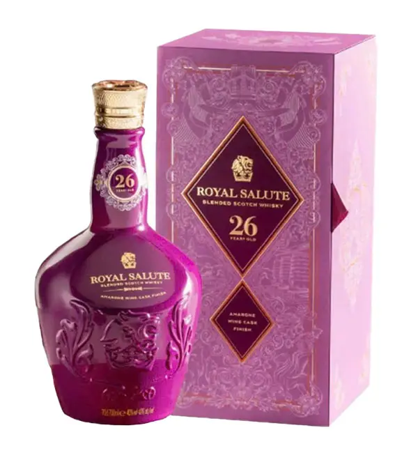 Royal Salute (thường được người Việt gọi thân thuộc là Chivas Royal Salute) luôn giữ vị thế độc tôn trong dòng Whisky siêu sang. Phiên bản Chivas 26 năm tuổi màu tím hồng mang trong mình những giá trị khác biệt: